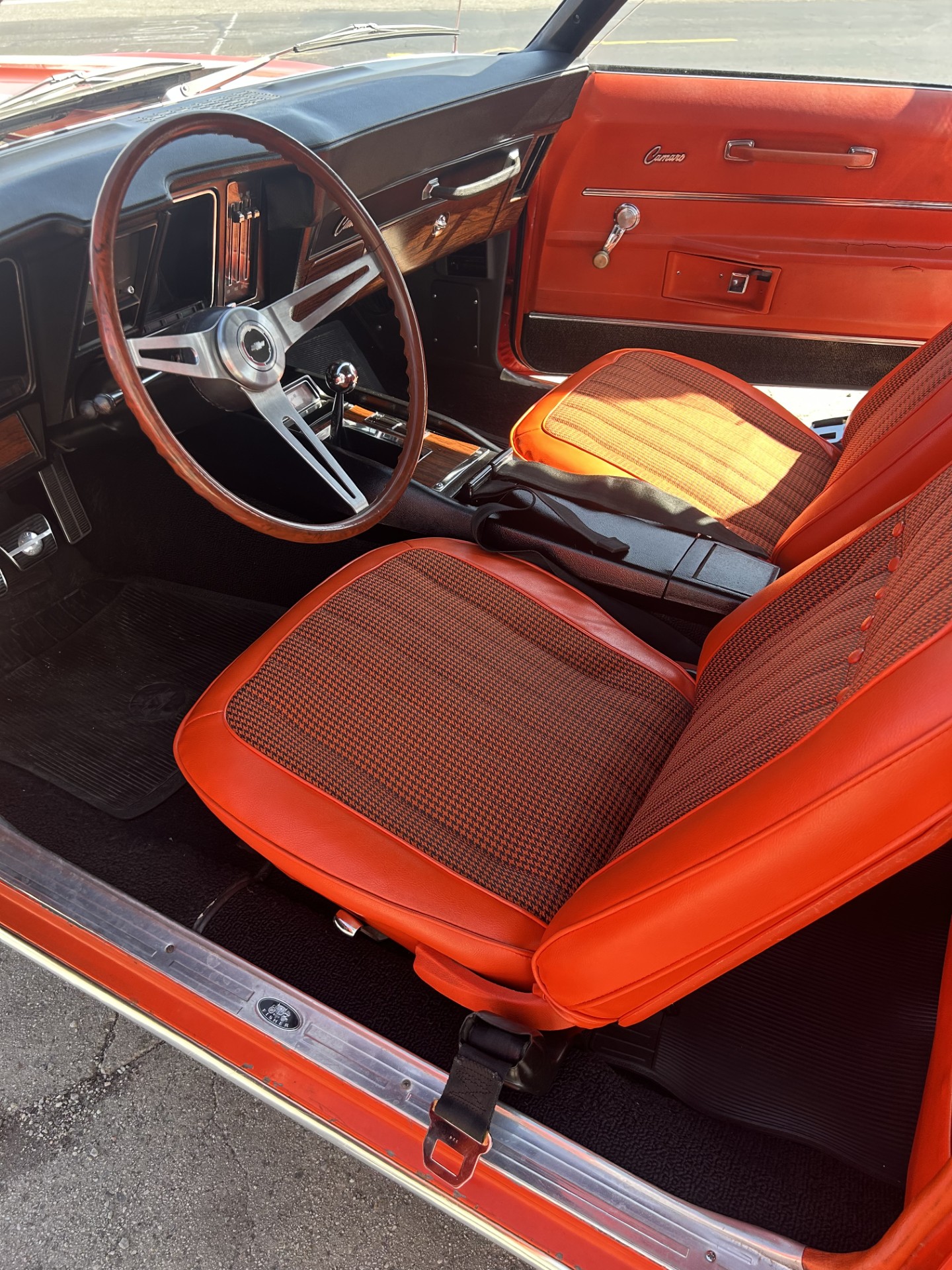 I bought this car last year, X77D80 , trim added back in the day.The paint is way old I would say 70,s , original tilt coulmn,console gauges, M 21 ,373 posi , orange deluxe hounds tooth.I drove this car quite a lot this year and what a fun car to drive.