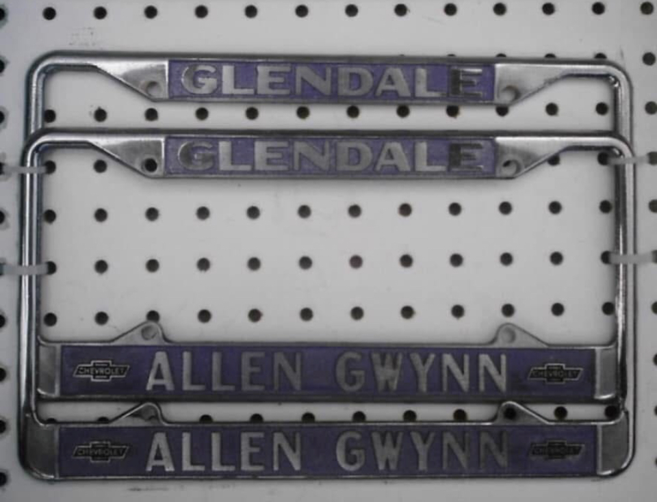 Searching for a pair of Allen Gwynn Chevrolet, Glendale license plate frames circa 1965-1968.
