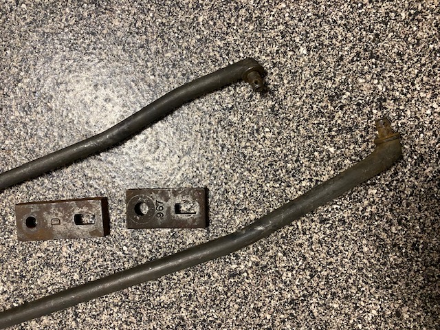OK, the two rods and the "D" lever are the A-Body parts, the "967" lever is from B-Body, all original pieces, in super cherry condition. Price does not include ship or PP fees. $120