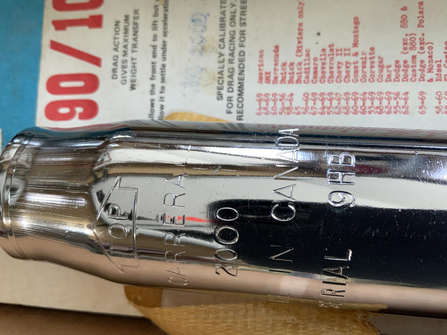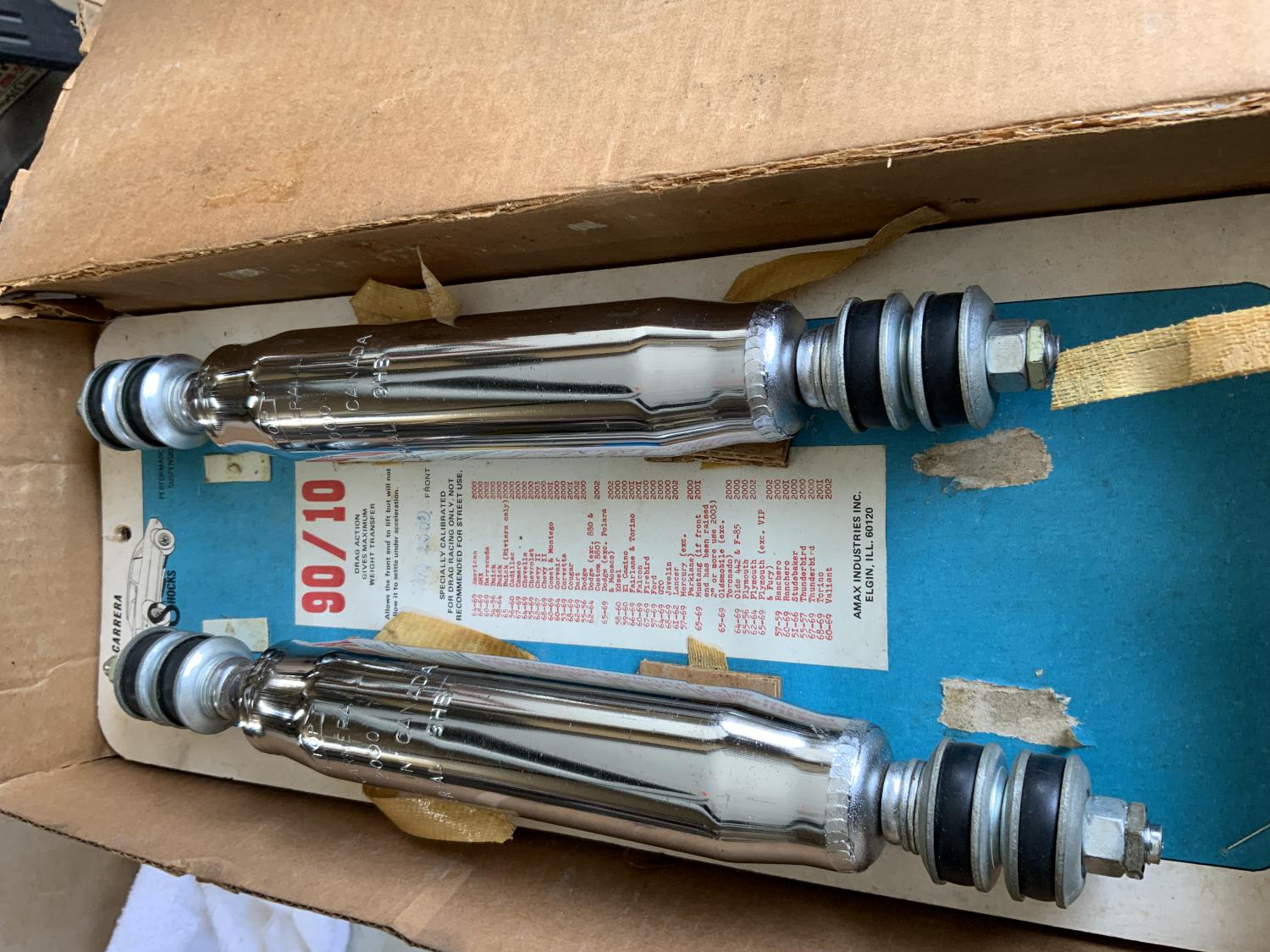 Front 90/10 chrome shocks, see photos for fitment Everything from AMX to 67-9 Camaro, 68 up Chevy 2 to Stutabaker !also have one of the mounting brackets easy to copy. $300 Thanks SYC!! Joe 608-751-0509 Last edited by hiperf69; 06-10-2025 at 06:21 PM. Reason: Add pic |
