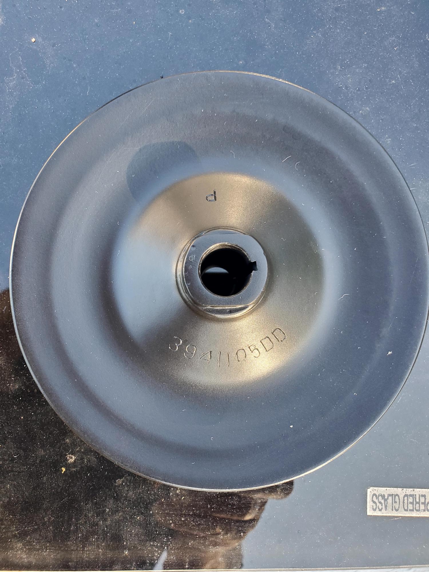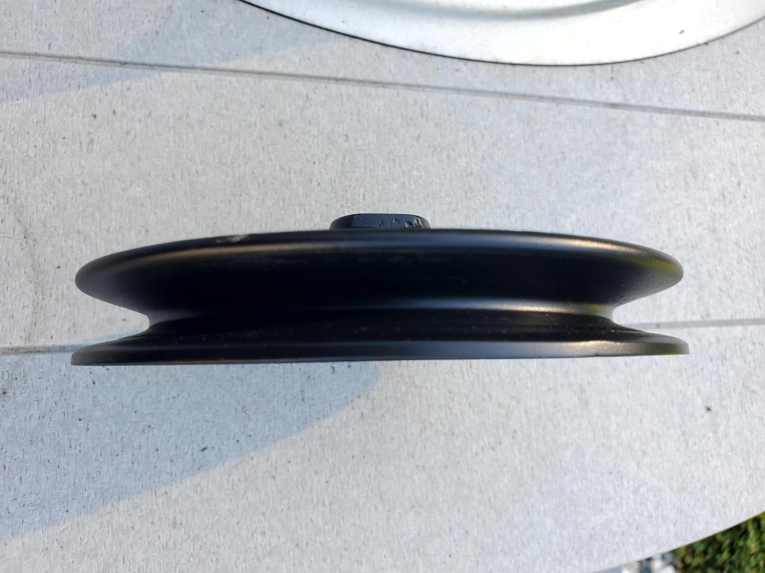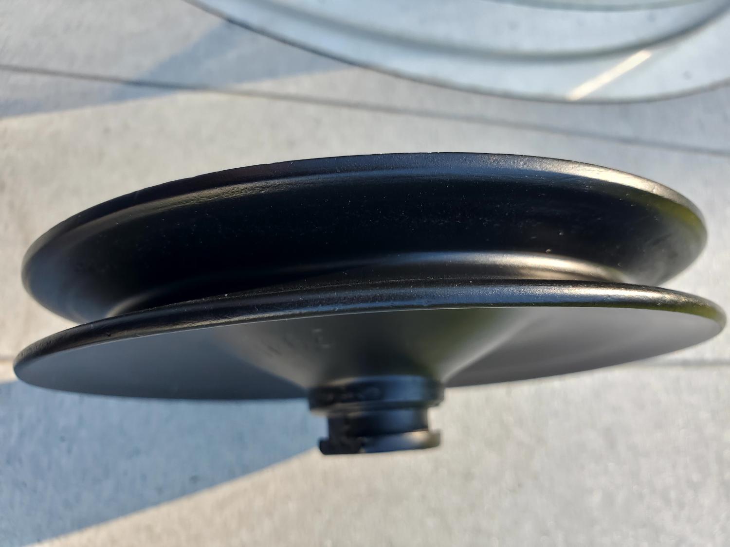 Blasted to bare metal with 90 grit aluminum oxide, primed and finish painted original 105DD Pulley.