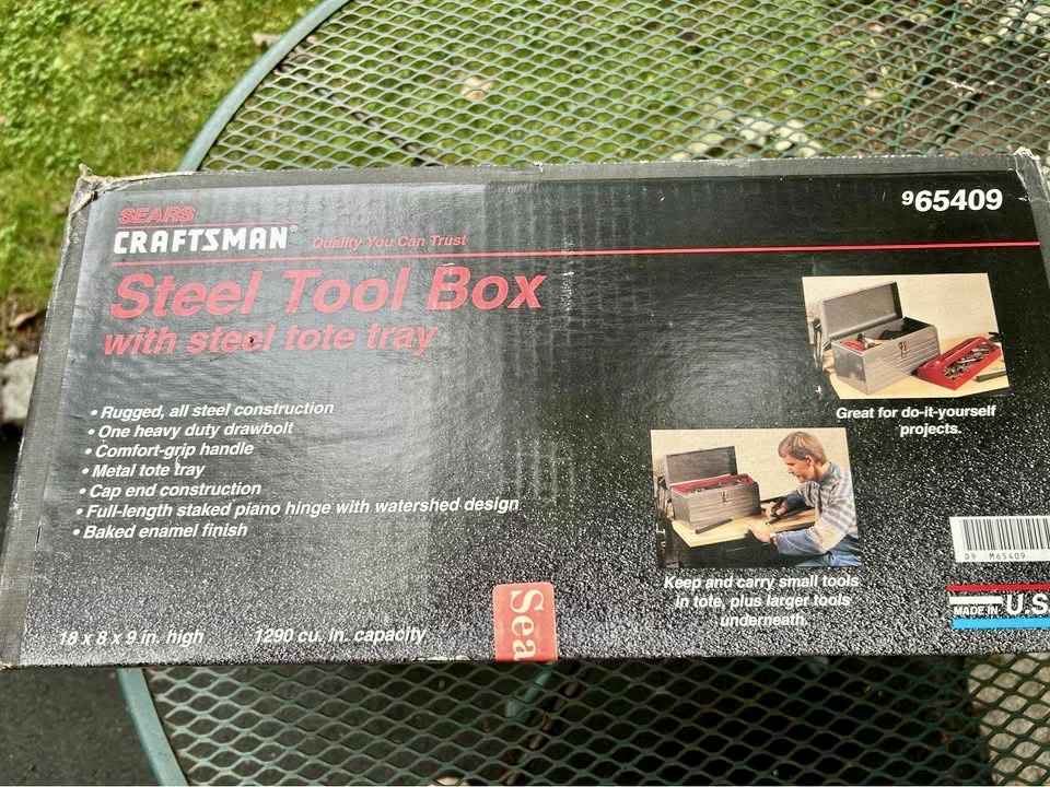 Brand new in the box Sears Craftsman 18” steel tool box with red tote insert. Vintage, made in the USA. $85 plus shipping.