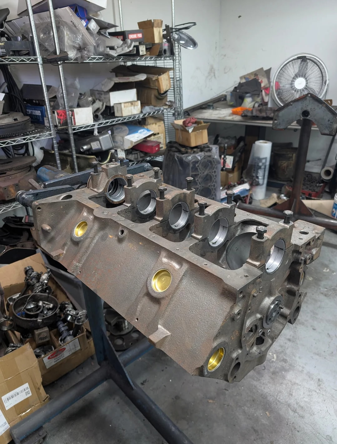 My son sent me this last evening asking me what I could tell him about it. We'll, obviously small block Chevy with 2 bolt mains. I wasn't smart enough to look past that. It's in a shop in the Kansas City area that he uses for machining needs. He thought it was possibly for use in its original car