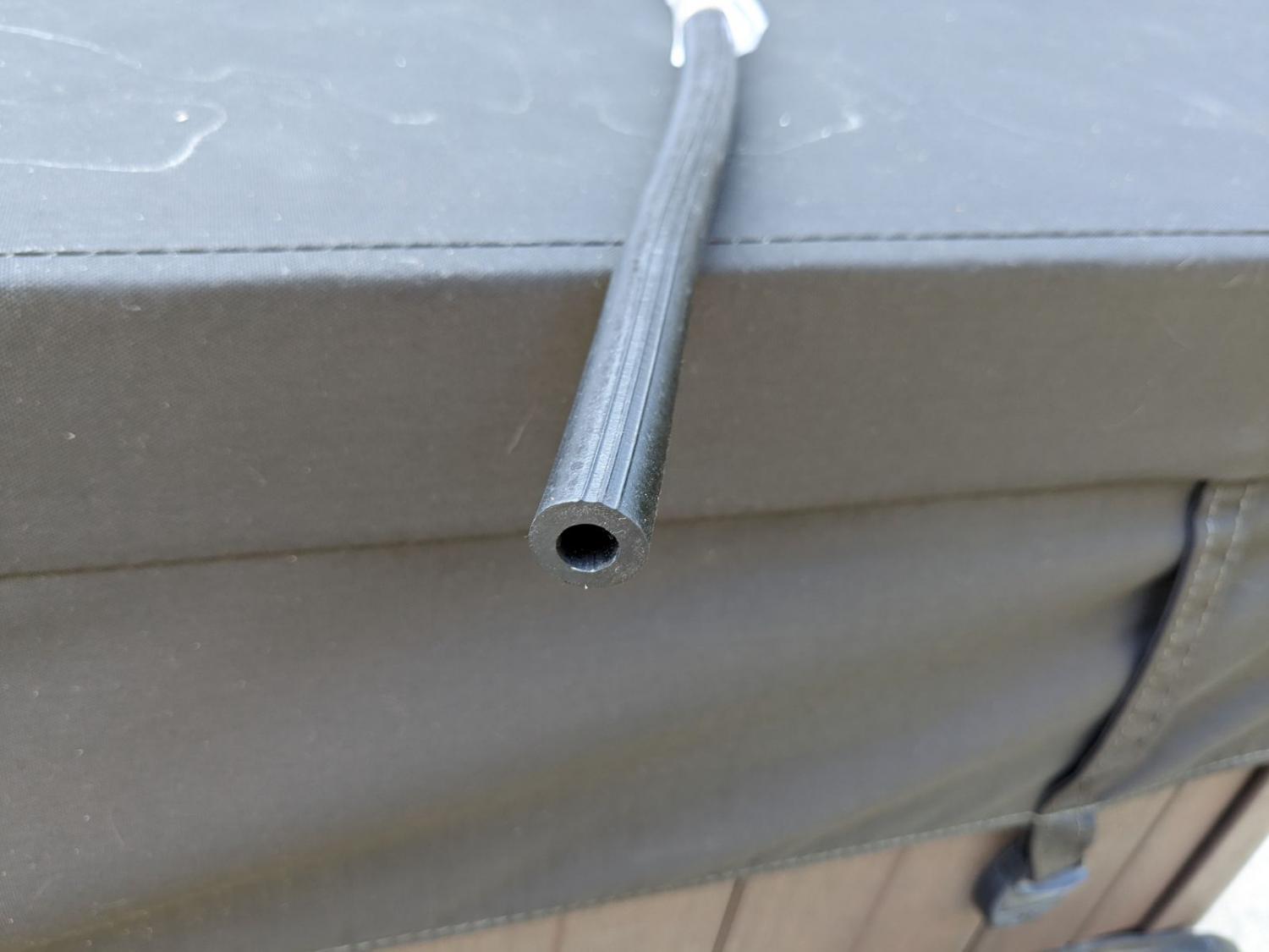 The reproduction hose looks like a piece of 3/8" cord re-enforced rubber fuel line... the orginals had a few ribs and what appears to be a little bit larger OD. Here is a pic of the Camaro Specialties Barn Find car... I have seen other unrestored cars with the ribbed hose as well... ![]()