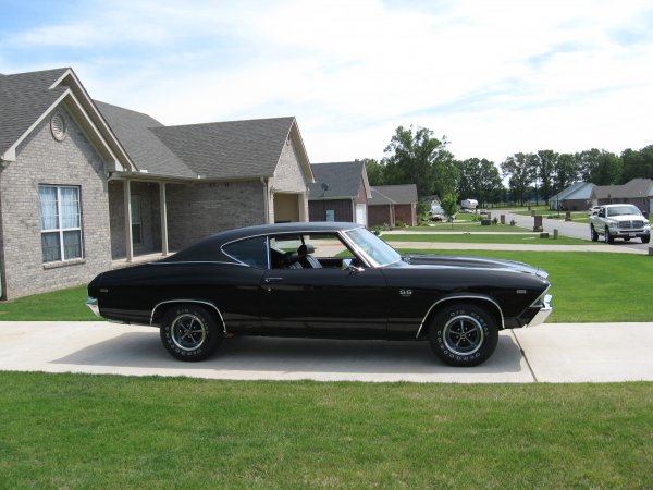 69 Chevelle SS 396. Selling my 69 Chevelle SS 396, Originally Black on Black, Code 10-10 PNT. Original Black Bucket Seats Code 756. Car was originally L-34 396 350 Hp, TH-400, Factory Tilt Column, Power Windows, PS, PDB, Factory Console. Chevelle now has Mid 70s 454, Block Casting #289 destroked to a 427. Still has Original #063 Heads. Converted to a Rebuilt M-21 last year with new Clutch, Flywheel, Etc. Rear Suspension is Lakewood Fully Boxed Lower Control Arms and Jegs Adjustable Uppers, Factory 12 Bolt Posi with 3:31 gears I believe. Engine Upgrades: Polished Edelbrock Performer Manifold, Holley 850 HP Carb, Accel HEI, Hooker Competition Headers, MSD Ign, and Soft Touch Rev Limiter. Chevelle has New 2.5 Inch Exhaust with H-Pipe and New Magnaflow Mufflers. The Body on this Chevelle is Very Solid. I took it to my Body man and he Said no Rust he could see or find. The Chevelle has an aftermarket fiberglass cowl induction type hood and was painted about 10 Years ago. Factory tinted glass and very nice interior. Restored 14 x 7 SS wheels with vintage Firestone SS Radials. A few chips & scratches, but paint looks good for being 10 years old. All trim is in very nice shape. Vinyl top was added when it was painted. The rear bumper is original in great shape and the front bumper is new. Aftermarket under dash oil pressure and water/temp gauges, tach, and shift light. Reproduction Muncie shifter mounted on Hurst Competition linkage. Car looks nice and is fun to drive. Gets “thumbs-up!” everywhere I go. $27,500 OBO.