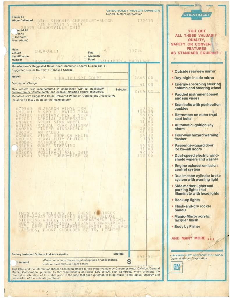 Just got the window sticker - only wish is the white stripe was red (for the resto they will be https://www.yenko.net/ubbthreads/imag...ns/naughty.gif)