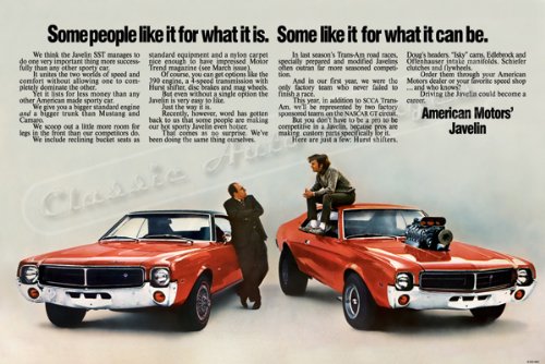 But the one that sticks out in my mind was the AMC commercial that had an AMX, or Javelin, not sure which anymore, where the older parents are setting in the house and the house starts shaking. Mom looks out the window and says "Harold, come look what your son did to his car". After a couple more" come look what your son did to his car" statements, Harold looks out the window, and there's a big ass blower out the hood, roll bar and slicks on the car with the kid having this huge smile. I loved that commercial. That's the way it was. Muscle car anarchy. </div></div> http://ecx.images-amazon.com/images/I/51f3LWV4BQL.jpg There's actually a book written by the head of AMC's ad agency, which could be of interest to some of you: http://www.amazon.com/Life-Advertising-M...sing+mary+wells |