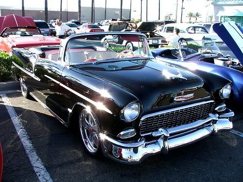 People cruisin' the lot in a 55 convertible...by the way, the blue jag in the background has a 502 big block chevy in it! https://www.yenko.net/ubbthreads/imag...emlins/eek.gif
