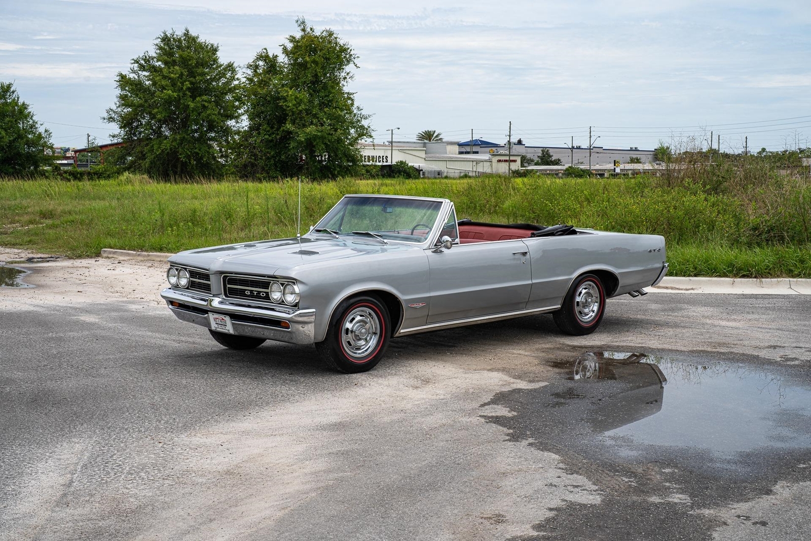 '64 GTO Convertible, #s 389/4-sp, Silver on Red