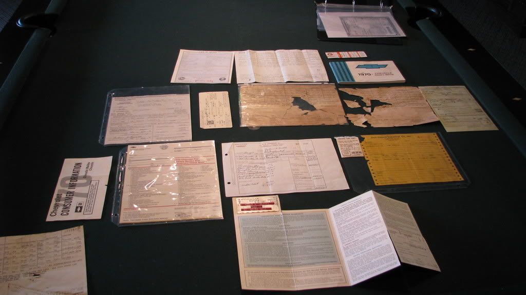 1970 Chevrolet Chevelle malibu unrestored original that is one of the most highly documented unrestored chevelles on the planet. THis car is original right down to the tires13460 original miles on this original paint car! yes i said original paint,not 50 or 60 % but 100% original paint! This car is perfect from the date coded glass to the interior. very desireable code 25 (Astro Blue) with blue int. the paint does have some blemishes bot ther is no cracking. 1 Small dent in front fender (see pics) that also dented the stainless piece but i purchased an nos piece for that side and just have not had the time to take it to a paintless dent guy to get it removed. All original drivetrain as well as brakes and brake drums. Still has orginal tags and paint dabs on car. Paperwork The paperwork i have is 3 buildsheets,one is a very rare line sheet,and there is still one in the benchseat but i was not going to take that out. I have the bill of sale,owners manuel,protecto-plate,shipper transit form,transit punch card,vehicle invoice,original 1970 title(not copy)pre delivery inspection checklist,key fobs,and the original application for title. |