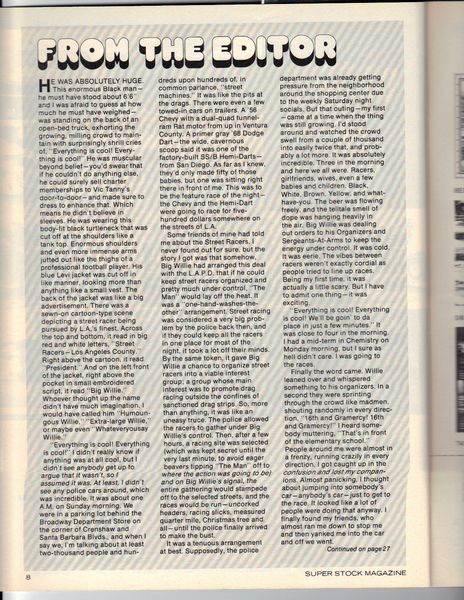 Is anyone out there collecting old street racing articles?I'd like to start a collecton.I'm looking into a book my cousin has that is titled Confessions of a Street Racer,or something like that.HiPerformance Cars magazine had some good ones back in the 80s.