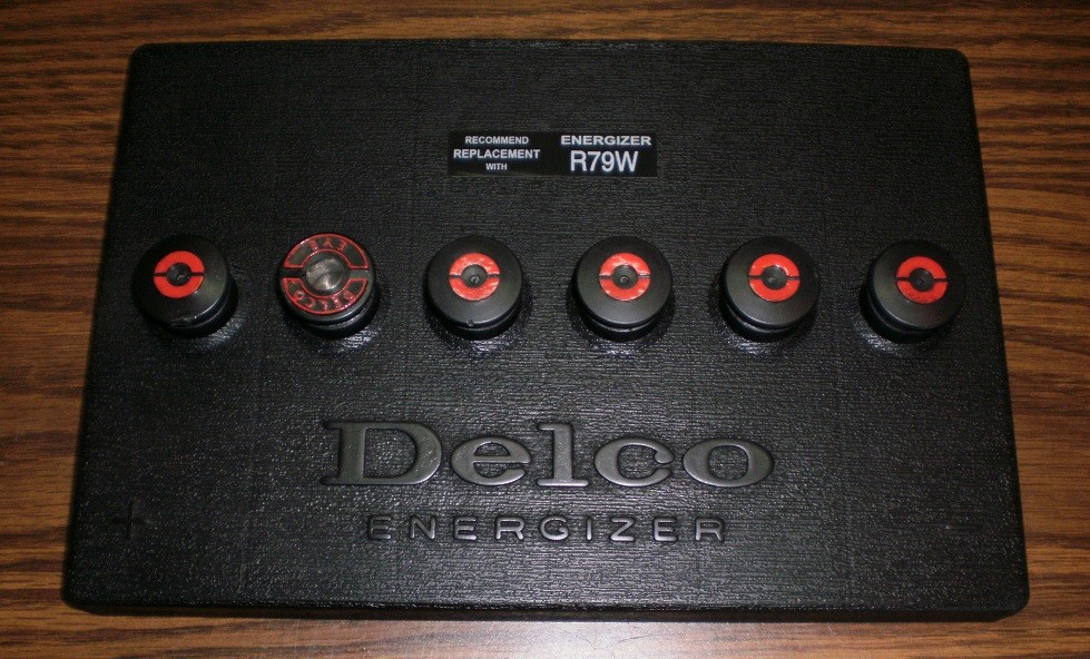 Next i hand painted the embossed DELCO ENERGIZER letters on the topper along with the Positive+ marking. The Battery caps were all glued in with The Right Stuff gasket sealer along the sides as they are looser than the tight fitting repro caps.