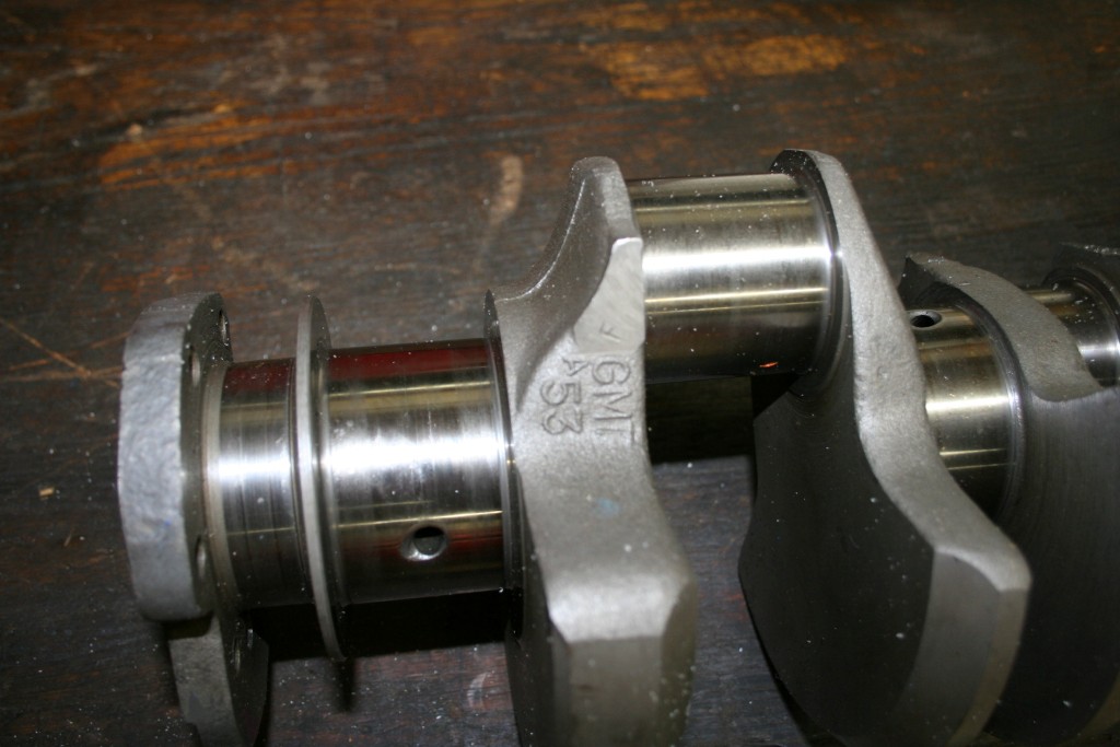 These photos are for GenOne (Jeff). I wasn't able to post them in the parts wanted section. There is a small flaw or dent in one of the journals (pictured). The crankshaft was checked and has never been cut. Ed