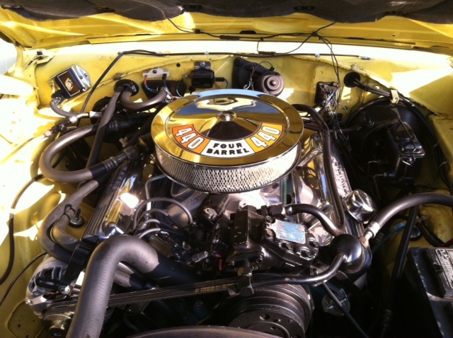 1968 Dodge Charger 383 "H" Code Car (HP 383) now has mildly built 440 with automatic console shift 727 Torque Flight, power steering, power brakes, front disc brakes, factory air-conditioning, rear defroster, original radio in dash but does not work. (has born with transmission and rear end. The rear is a Sure Grip 3.23. Has very nice am/fm/xm stereo system mounted in the trunk.