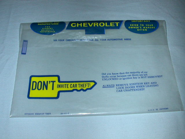 This is an original 1969 Camaro, Chevelle, Nova 3rd edition owner's manual dated April 69. The back cover had some slight water damage as you can see from the picture. Also comes with an original plastic sleeve in excellent condition.