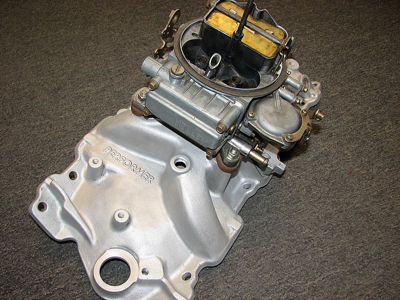 Have a very nice small block Chevy Edelbrock Performer intake and Holley 1850 4 bbl with manual choke. Carb worked well and was taken off to install a 2x4 set up. Intake has no cracks, repairs or bad threads. Nothing is warped or damaged and was just recently removed from a running street rod. Great for your kids first car where they can get some bling without so much cha ching. $150 plus the ride. Will separate.