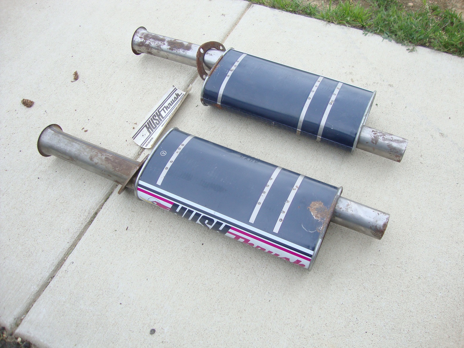 Pair of Day 2 Hush Thrush header mufflers. 3" collector and a 2" outlet. They have some shelf wear and will need a cleaning up. Instructions included. $275 pair.