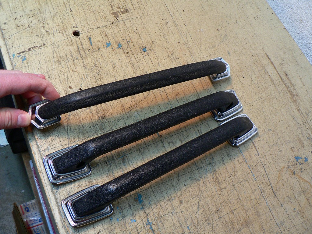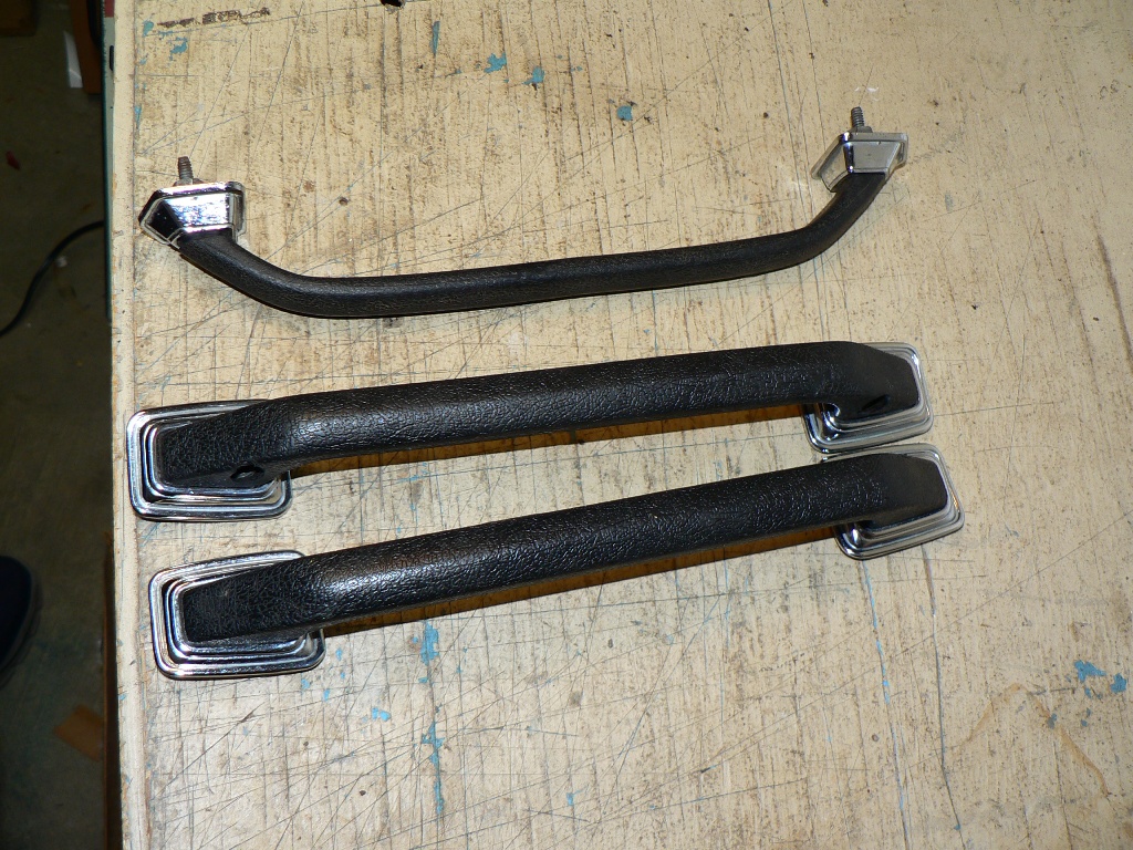 69 Camaro deluxe interior door handles and dash grab bar with chrome bezels.