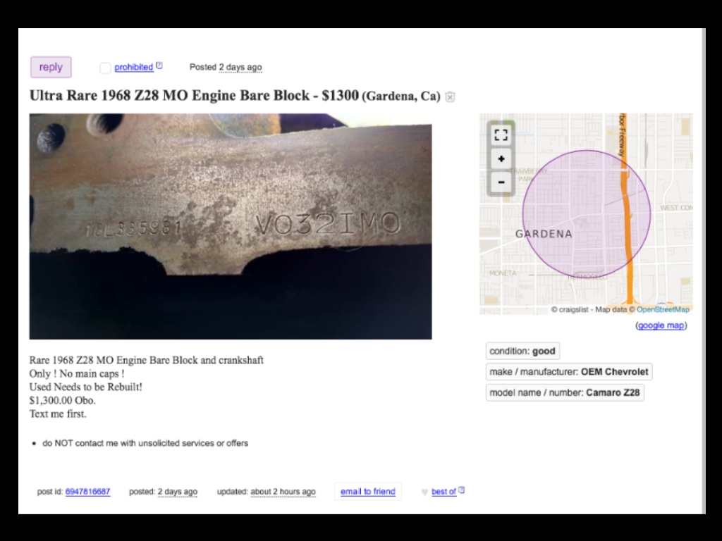 I saw his while cruising craigslist. How's the stamping look? Not mine and I don't know the person. Maybe somebody has the car to go with it??