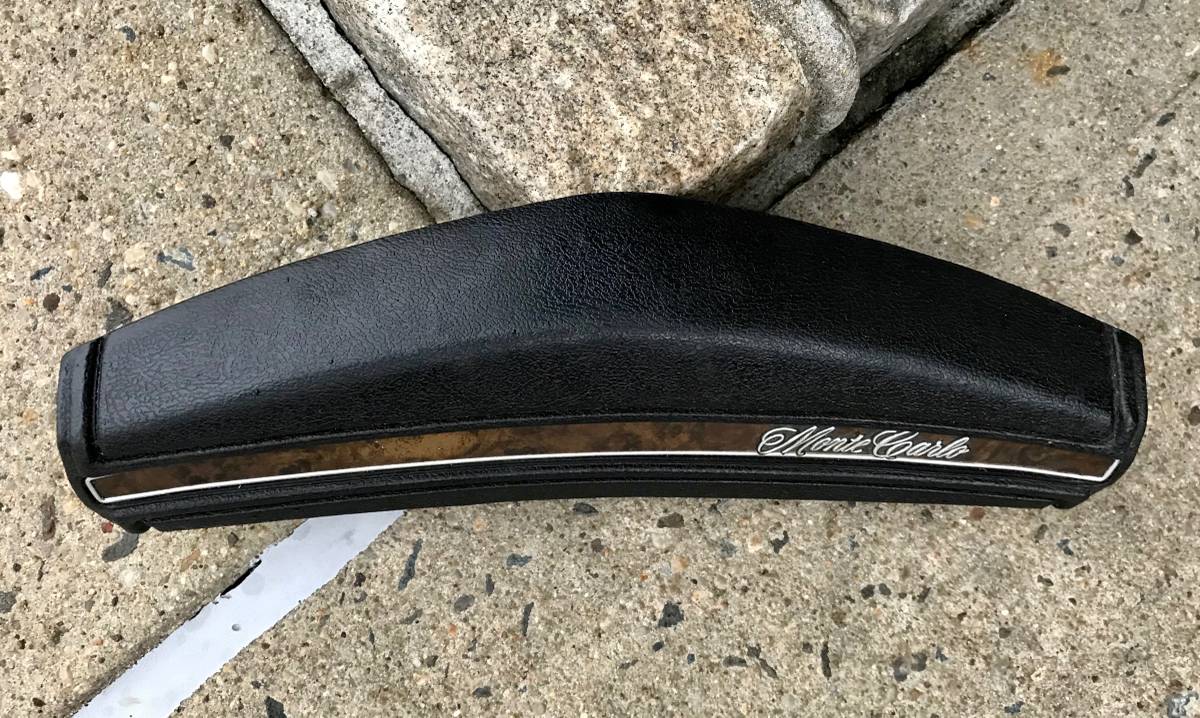 This is an original black with wood grain steering wheel horn pad for a 1971-72 Monte Carlo. It is very clean with almost no wear on it. Just keep in mind that it is not perfect due to it being almost 50 years old. (SOLD)