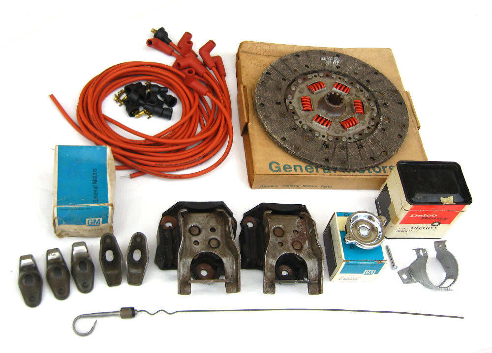 67-70 Camaro Z28 NOS GM Motor Mounts, Clutch Disc, Wires, Dipstick, Oil Cap, Rockers.