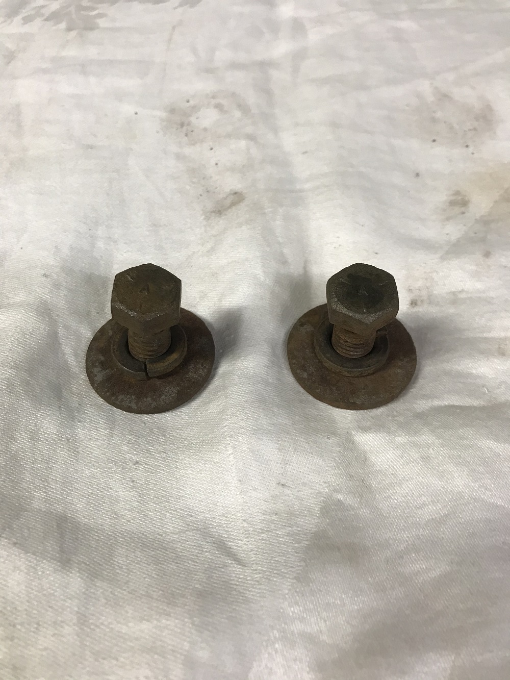 Original Hardware removed from a 69 Camaro with a Muncie. Bolts are 1" long with 7/16" course threads. Large flat washers are 1 3/8" in diameter and roughly .170 thick. Bolts have some rust below heads but are still solid. Removed from car 30 years ago. $30.00 shipping included. Paypal F and F please. Jim,413-262-3445.