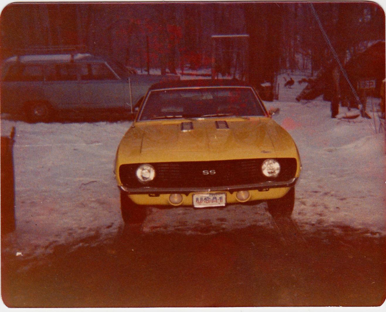 It was a 350 SS/RS ermine white with black vinyl top and black interior 4 speed with console.I painted it blue and removed the vinyl top. The pic with the black wheels are circa 1973 and the one with Keystones all around is circa 1975. Keystone pic is with a big block 70 402 from my brothers Chevelle. With the big block I ran headers and 456 gears. It was a really good running car. Ripped it n street raced, went through other engines, a 68 Z 302. The big block was my favorite and that’s the reason I chose my present 67 4K.