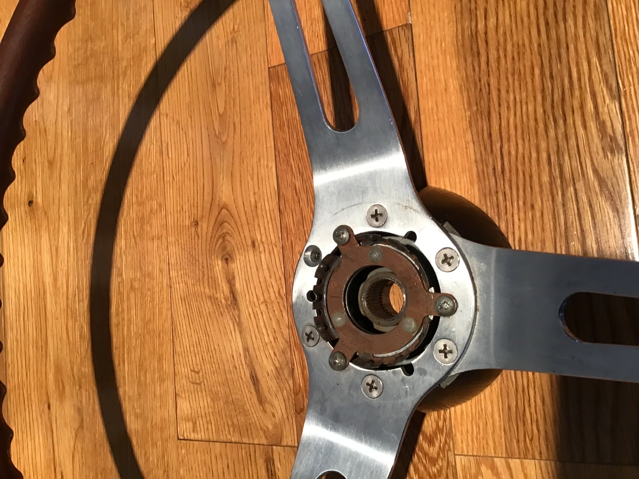 Used 1969 Chevrolet rosewood steering wheel. This wheel is not bent and has some grain and texture left. The color is nice with marbling. I would rate the wheel as a good driver. It has one crack at the 3 o’clock position. The hub, horn contact and steering wheel is genuine GM. The horn button is reproduction. It has nicks but nothing major I can see.Please look at the pictures and make your own judgement. $1100 plus shipping. Thanks Yenko.