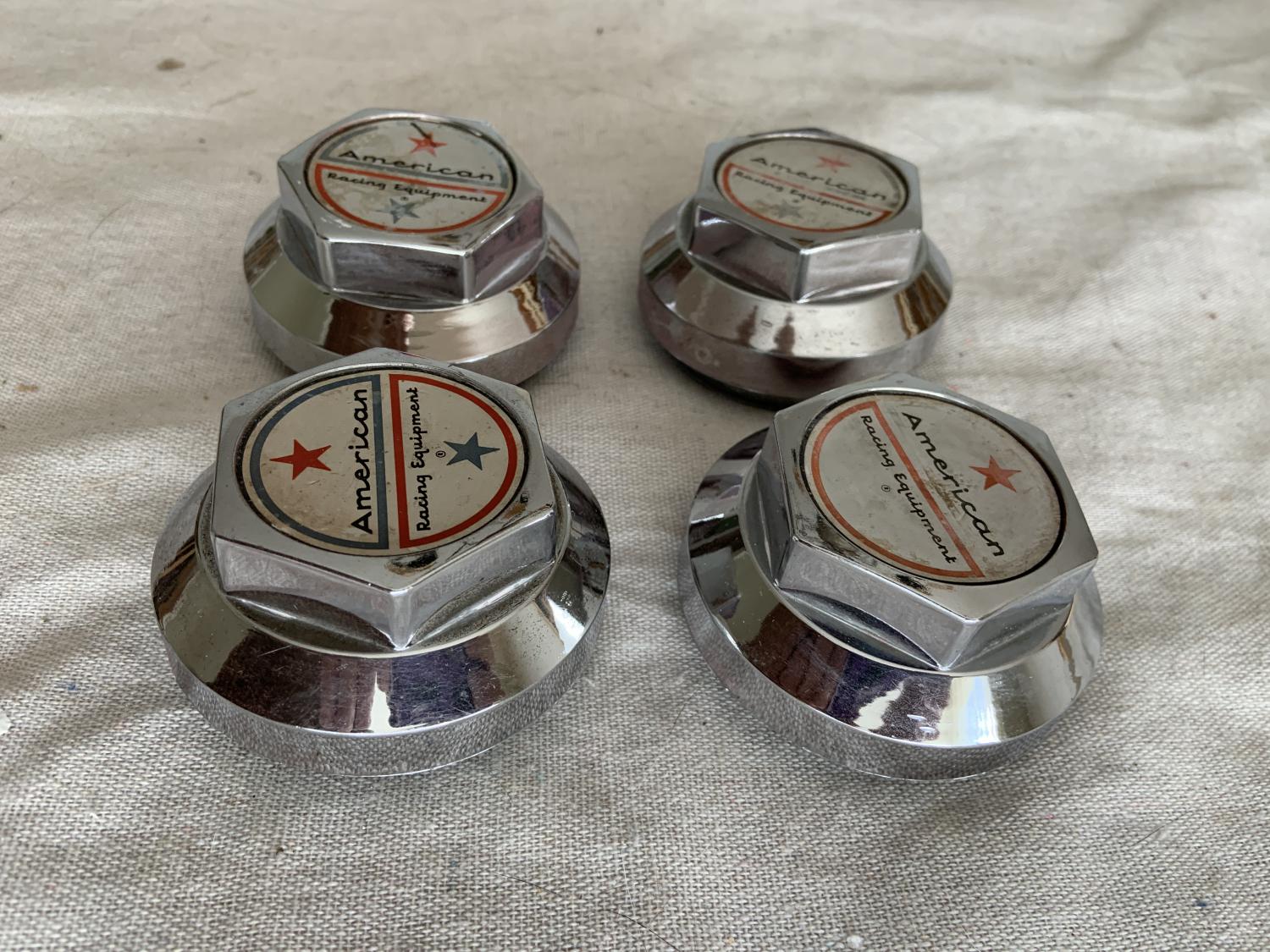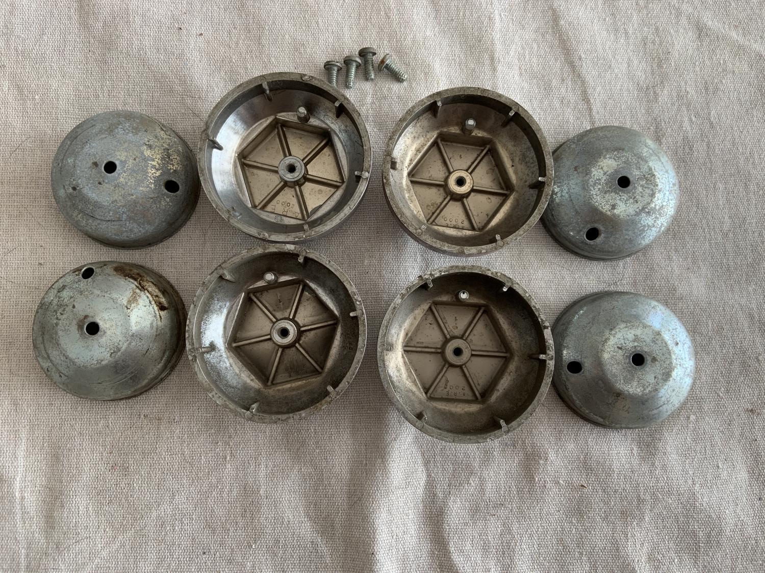 These were on a set of 200-S "Daisy" wheels I had on my old hemi Charger. They were circa 1971. The decals are patina'd nicely and the chrome is rather nice. Comes with the original screw style backing plates. The threads in the caps are perfect - nothing stripped. Even has the original set of screws, too.