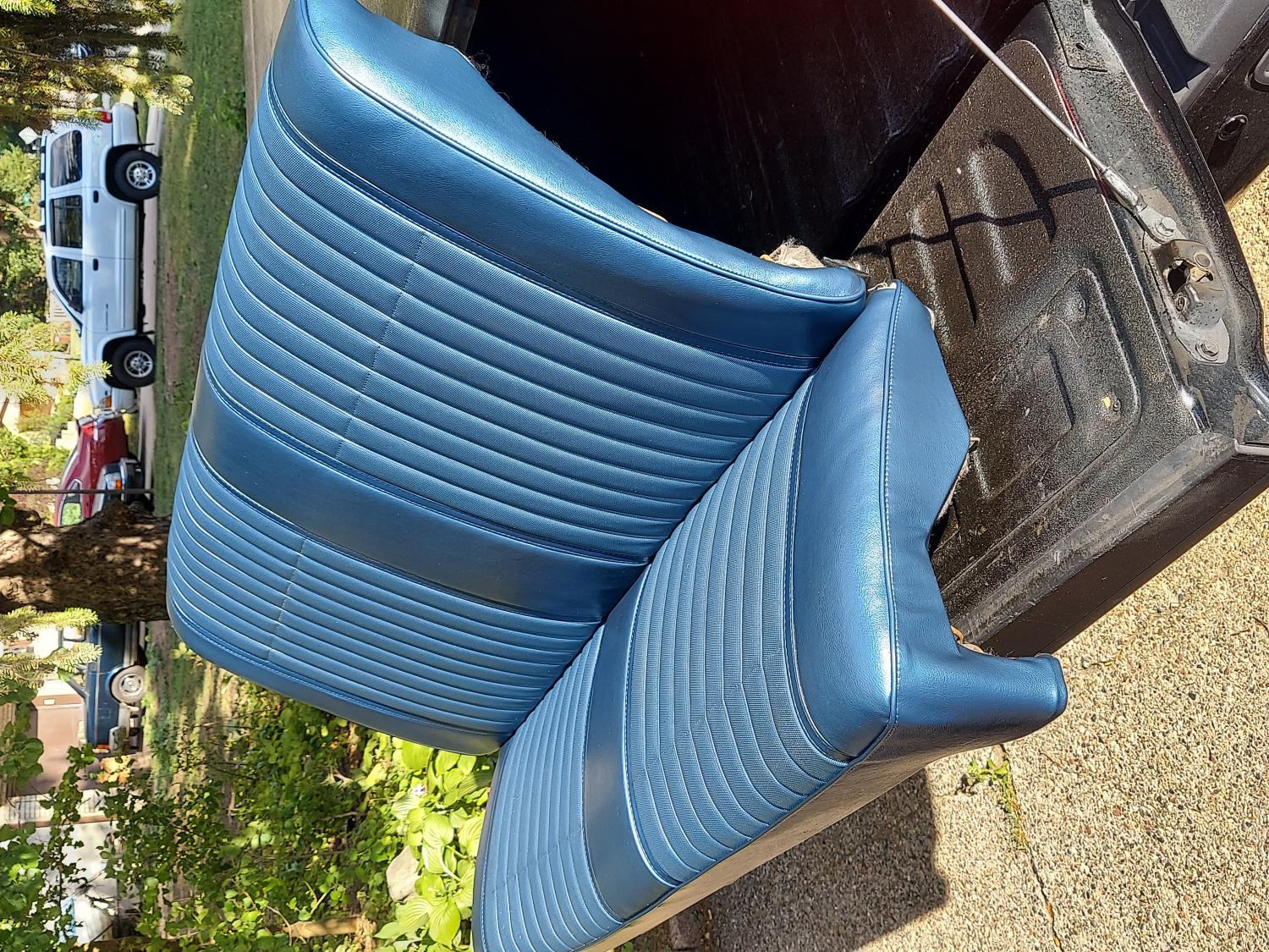 Seat are out of a 1970 GTO along with new foam. Medium blue in color. Never installed since restored. $800.00