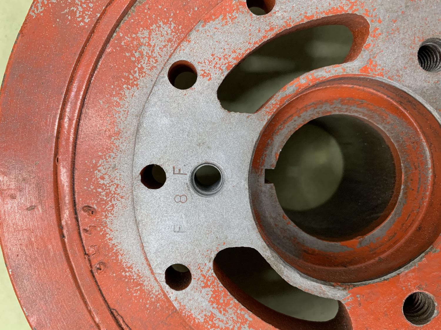 3870325 BB 8” Harmonic balancer. Very nice original that was removed years ago. The rubber ring looks great and balancer is not pitted or beaten up. Was removed from a 1968 engine and looks like F8 date although is correct for many years. 200.00