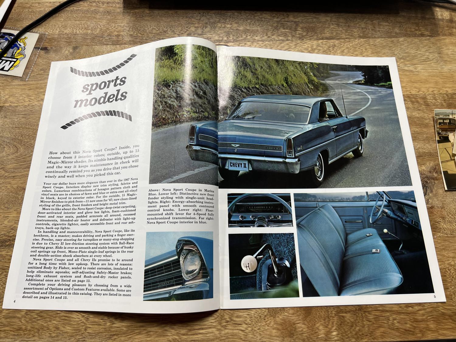 For sale here are ‘67 Nova dealer brochure and accessory booklets. About as nice condition as possible. Great colors, no rips or creases. Authentic GM.