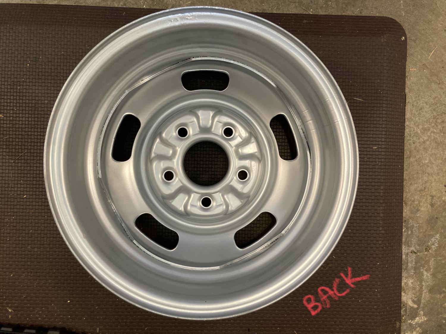 I ended up with an extra DG wheel after we put a set of 5 together. This one is a pretty good wheel, but suffered a bit of pitting (looks like it was on a car with a flat tire for a while). Previous owner stripped and powder coated it, said it sealed up fine prior to refinishing. I’d probably do a little filing and sanding and shoot it with black and argent. Asking $120, which is less than half the going rate for good DG’s. Buyer pays actual shipping (FedEx Ground or UPS, your call) I already have a good 15x15x7” box ready. Thanks!