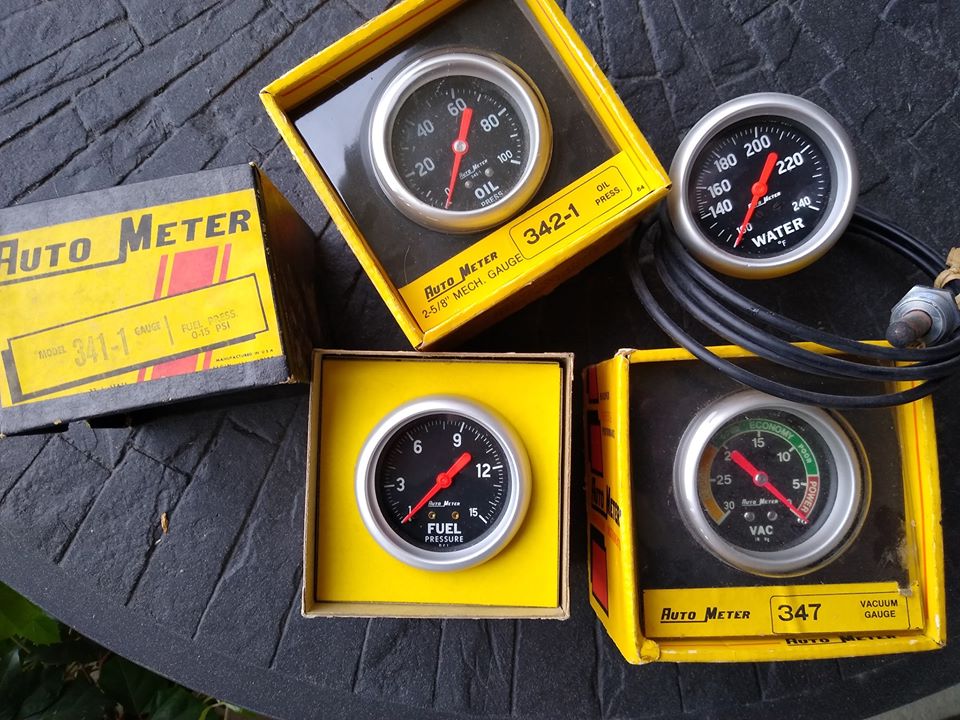 I have a complete set of first edition early to mid 70's Auto Meter gauges with the "fat bezel" and correct early face markings. These are all mechanical gauges. I would take $675 for all + shipping.