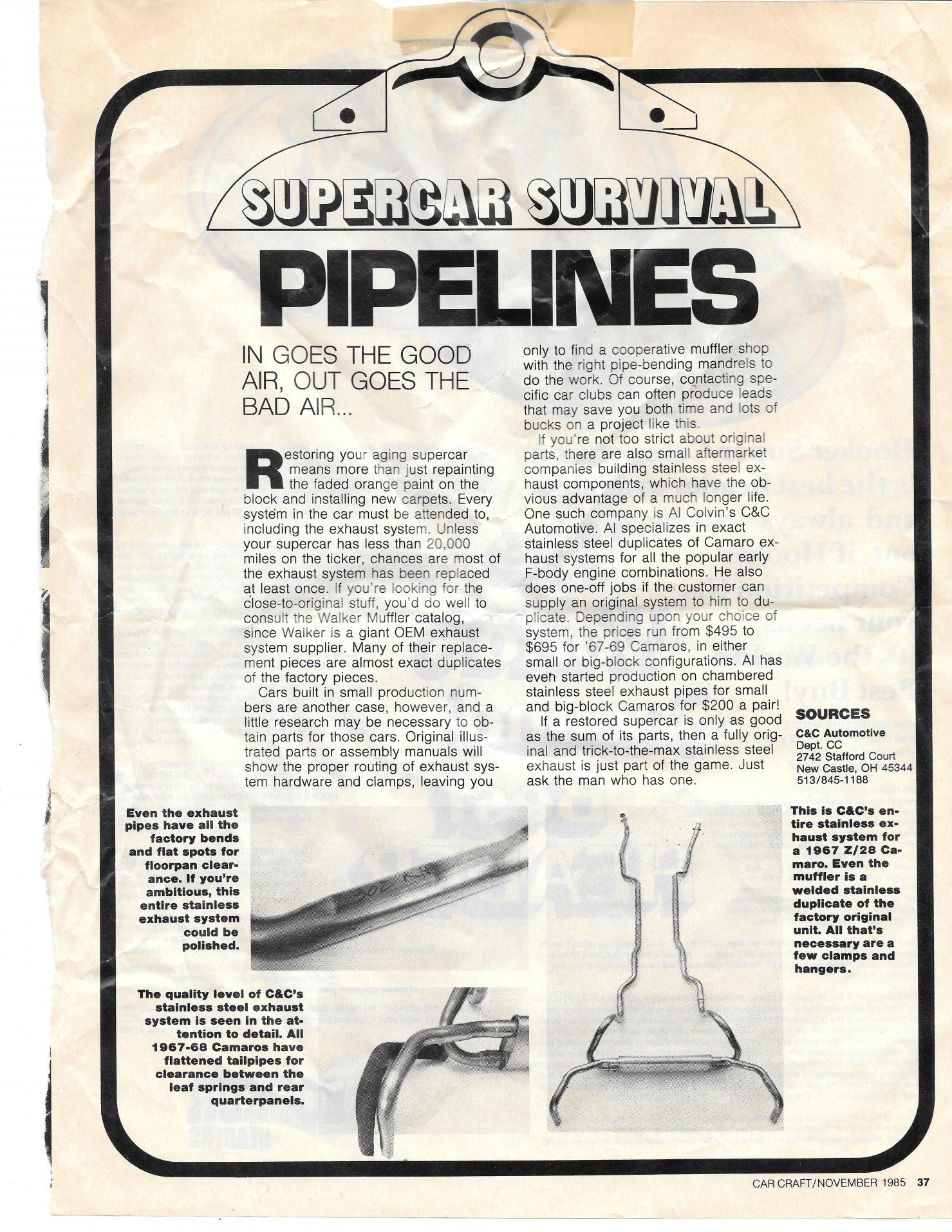 in 1985 we had C&C automotive to source our Exhaust systems via the ads in the Muscle car mags of the day. Since I had a 69 Pacer (Bought in 1984) that had a jenky Midas system on it I sourced the Stainless rear pipes with stainless extensions of the day that were the Best built avail at the time. I ran these tips on a fresh Midas cross flow system till to the rescue Gardner Exhaust became available.
