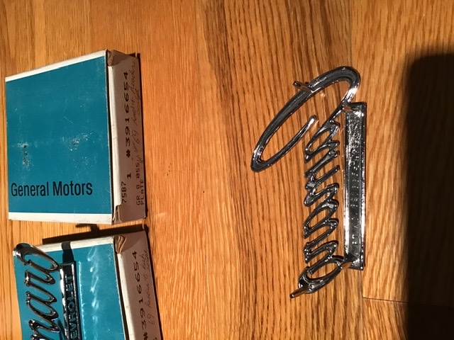 The emblem on the right is NOS never installed. The black inlay is perfect as well as all letters. This emblem is as good as it gets for NOS. The emblem on the left was NOS when I installed it on a car. It is a very very nice emblem with the black inlay really nice as well as all letters.I pulled it off of the car after a year. All prongs are perfect. You can spot aftermarket a mile away,they look terrible. These both are part number 3916654. Both come with the original boxes. These are getting a little hard to find as the later ones have flaws in the Camaro lettering. $200 plus shipping Thanks.