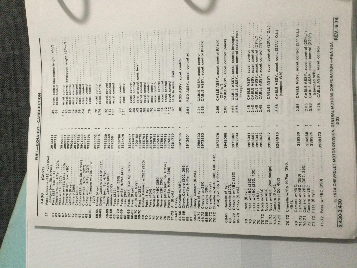 Folks, can anyone tell me which throttle cable is correct for a 1970 L78 Nova? I have found several on line (and ordered two) and both are too long. Any advice (correct part #, length, and vendor) would be appreciated.
