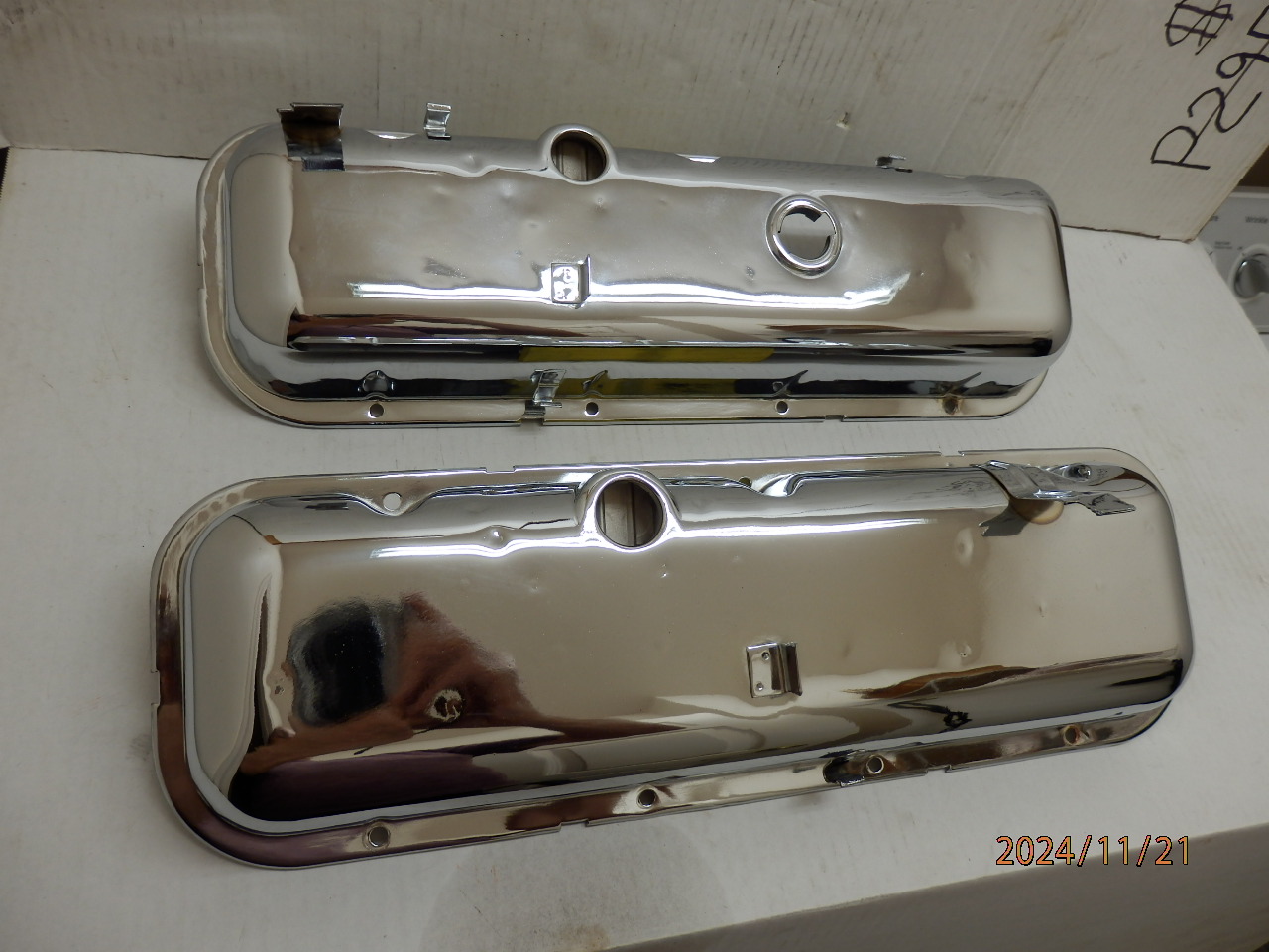 This is a pair of 1970 Chevelle original assembly line correct valve covers that I had rechromed with flash chrome, they are correct for LS6, L78 & L34. The passenger side hast the correct lower clip, the flat spot on the lower back corner & the correct top rear plug wire stand. The passenger side hast the correct small clip on the lower rear for the temperature sending wire & the 2 small clips on top for the TCS wire.