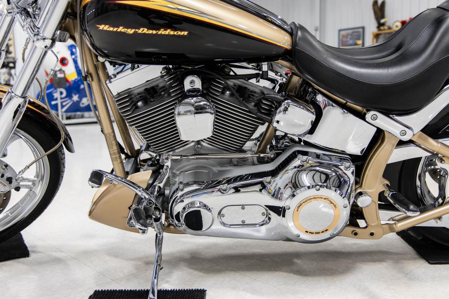 This magnificent 2003 Harley-Davidson CVO Softail Deuce 100th Anniversary Edition is new with 1 mile. Yes, it's new with 1 mile on the odometer! The CVO series was a family of factory made custom motorcycles introduced in 1999. The CVO line-up comprised special features not found on mass-produced models including Screamin' Eagle branded parts, hand-painted pinstripes, ostrich leather, gold leaf incorporated in the paint and many modern electric accessories. The 2003 Screamin' Eagle Deuce is the first Softail model to be the subject of a CVO project. Approximately 3,000 examples of were produced by The Motor Company's Custom Vehicle Operations division for the 100th anniversary. The bike had a Centennial Gold and Vivid Black paint scheme and color-matched frame. From the information gathered this one-owner example has never been ridden and was stored in a climate-controlled environment to preserve its commemorative luster. The original owner displayed the bike for 18 years before selling it to the second owner in 2021. The second owner also never rode the bike and stored it in a climate-controlled environment as a display piece. The second owner never marketed it for sale but offered it Marc Schiliro and he jumped on the opportunity. MS CLASSIC CARS purchased it in October of 2024 and December of 2024 is the first time it's been listed for sale. The original Gold Key package, keys and fobs, owner's manuals, mirrors and painted plastic trim are included. These items are pictured in the photo gallery. MS CLASSIC CARS installed a new Duracell Ultra battery on 12-06-2024.