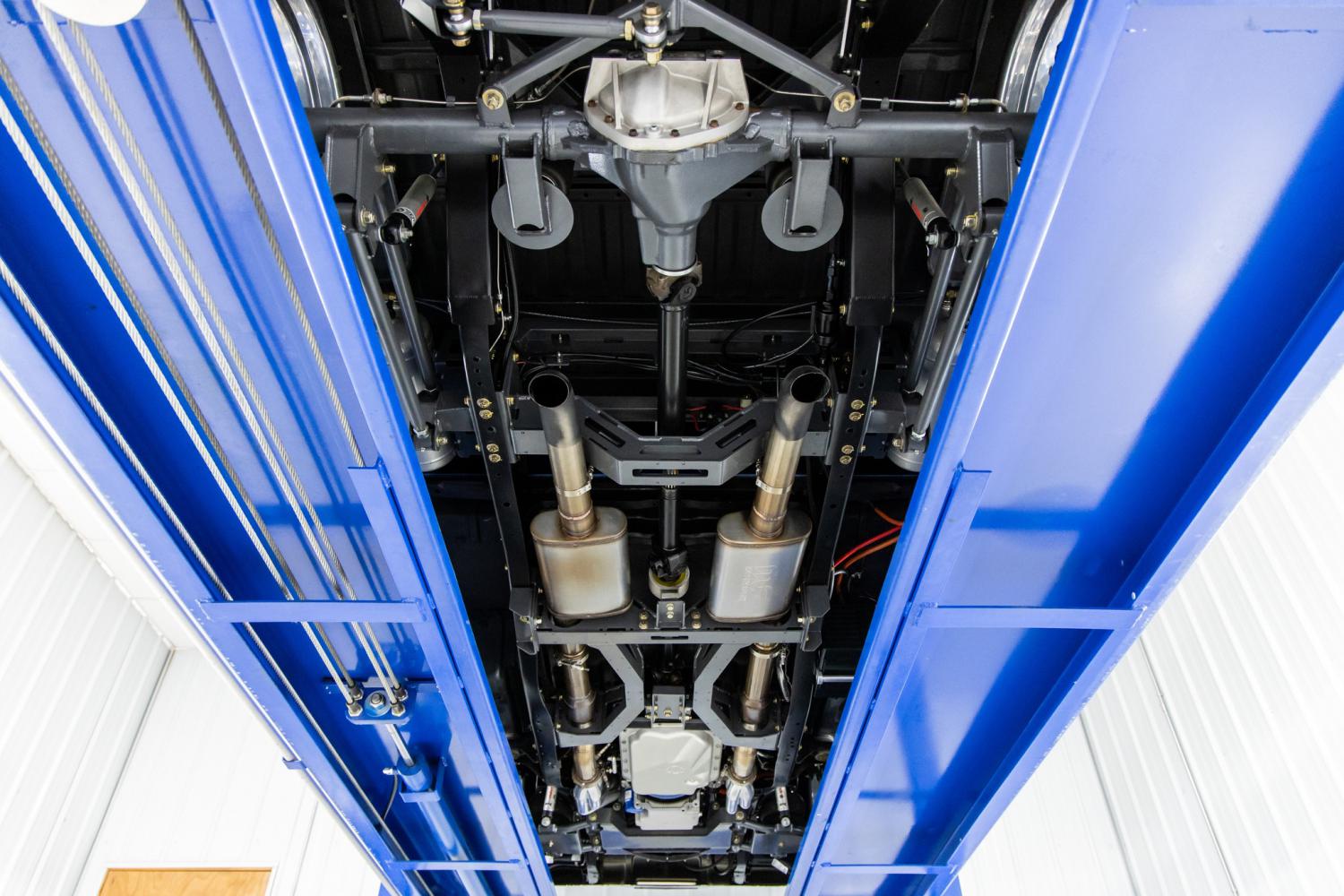 The painted engine compartment is highly detailed throughout with all new parts. The firewall was shaved and for a smooth appearance and the inner fenders were decorated with bead rolls. It's powered by a Supercharged LS2 V8 with Holley Dominator engine management system. This engine runs excellent and produces some serious power. Some of the engine parts include an ISKY camshaft, Frankenstein heads, polished intake, CTS-V supercharge with a ZL1 lid and Lingenfelter pulley, Siemen Deka injectors, MSD coils, AT1 balancer and Holly oil pan. It's equipped with an Aeromotive fuel pump, II Much fuel vent and Motion Race Works remote breather. The engine is cooled by an aluminum radiator with dual Derale electric fans and billet overfill container. The engine breathes through ceramic headers, 3” stainless dual exhaust system, Magnaflow mufflers and catalytic converters. The engine is coupled to a 4L80 Stage 3 automatic transmission. It's equipped with a Phoenix Rack and Axle 2-piece driveshaft. The power is transferred to a stock 12-bolt housing that shortened 1”. It has Tru-Trac differential with 32 spline axles, Moser cover and was powder coated Dark Grey Metallic.