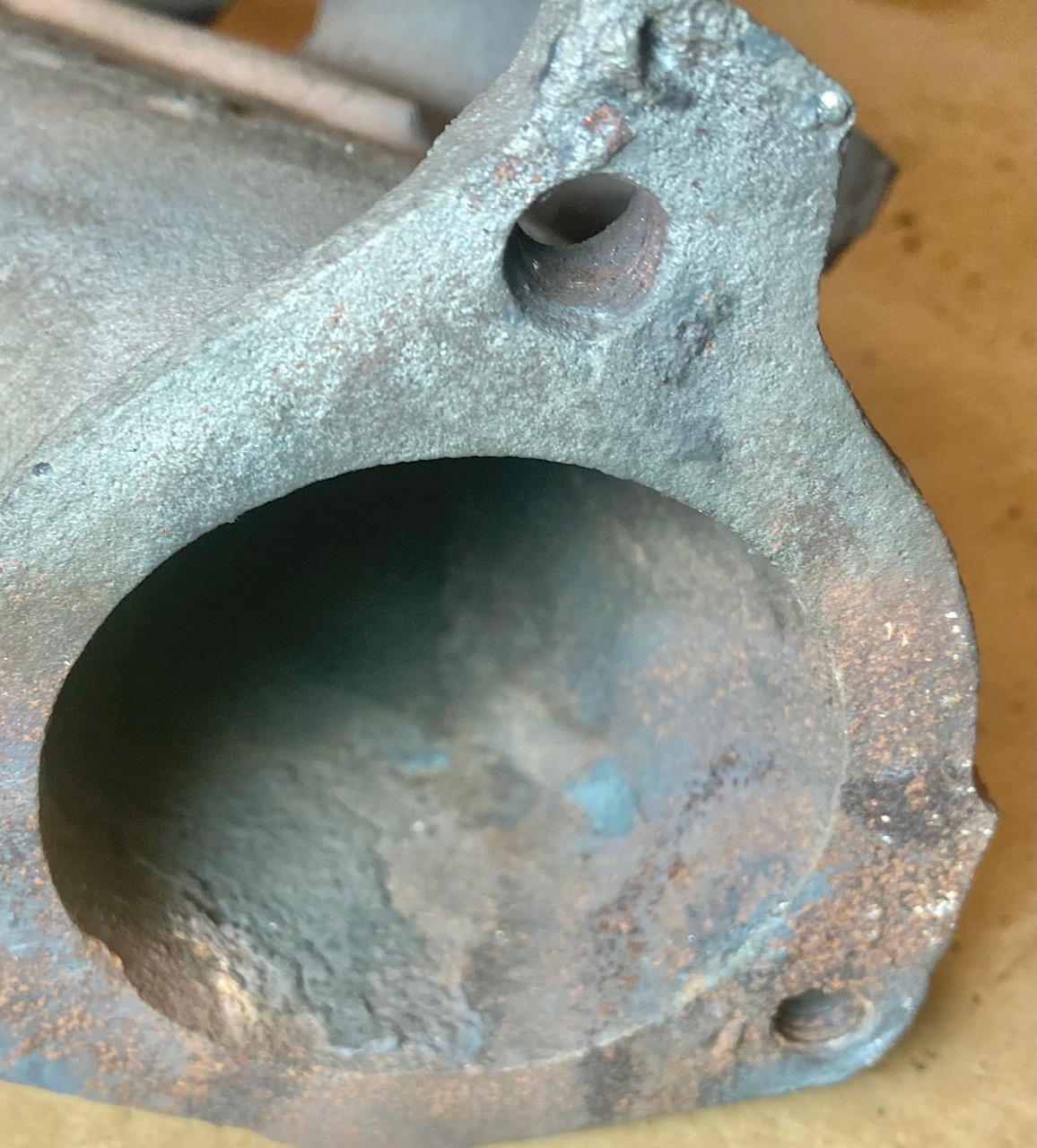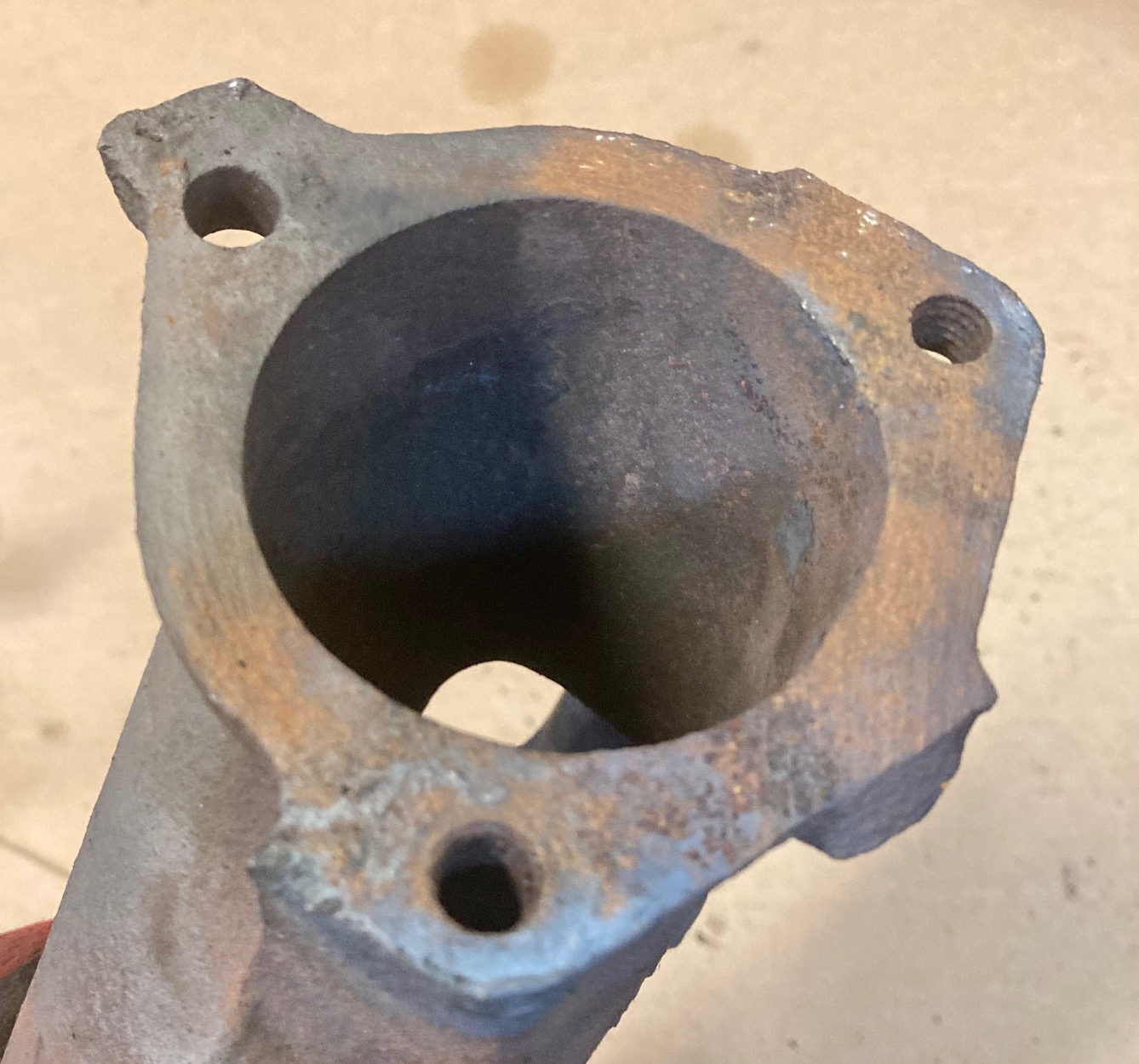 One of the threaded holes is completely stripped out, you can see where a torch was used to remove studs/nuts in the past.
