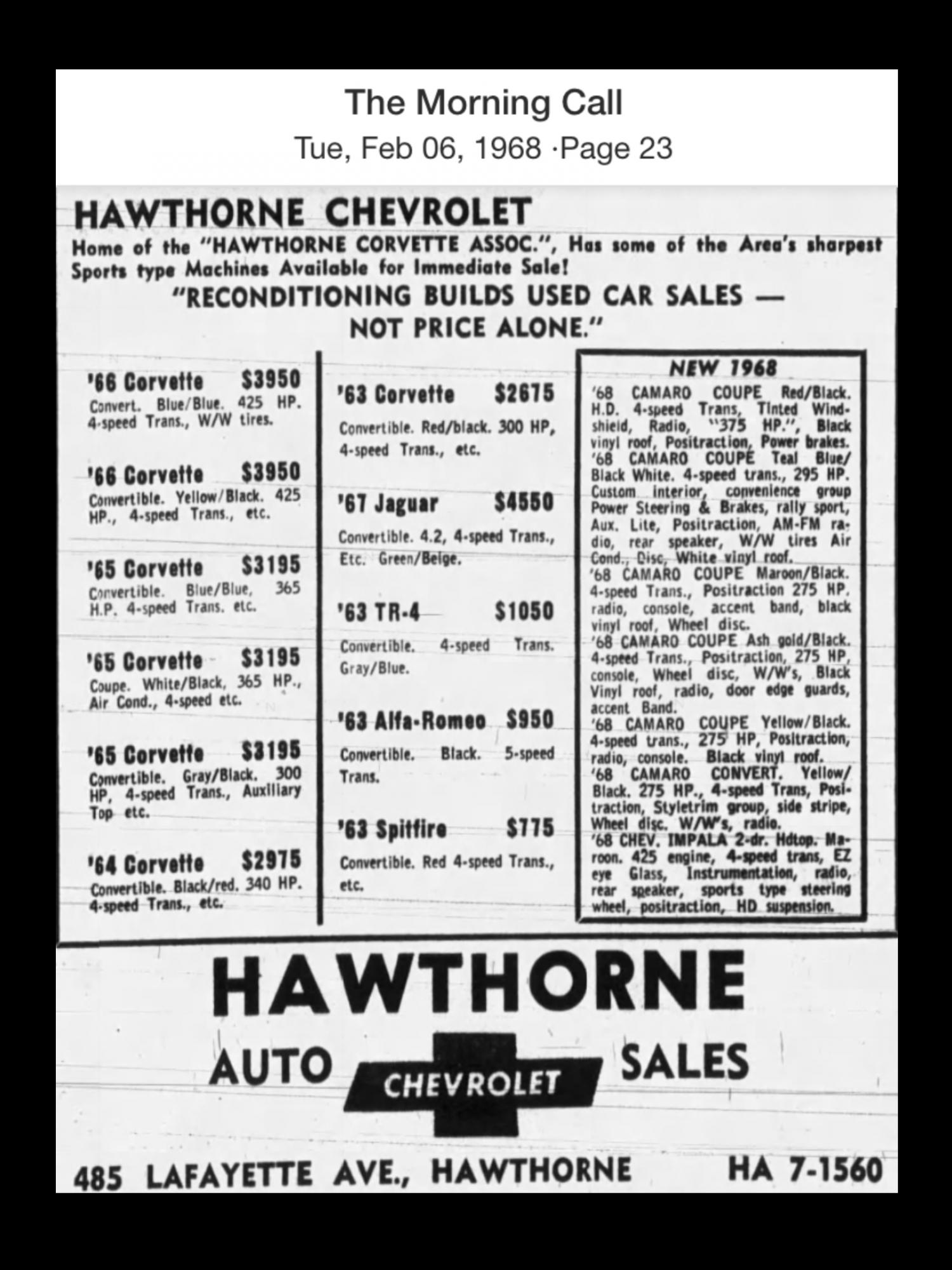 Note 12/69 Ad below w/ 4x 427 Camaros also 2x 396 Pace Cars available.