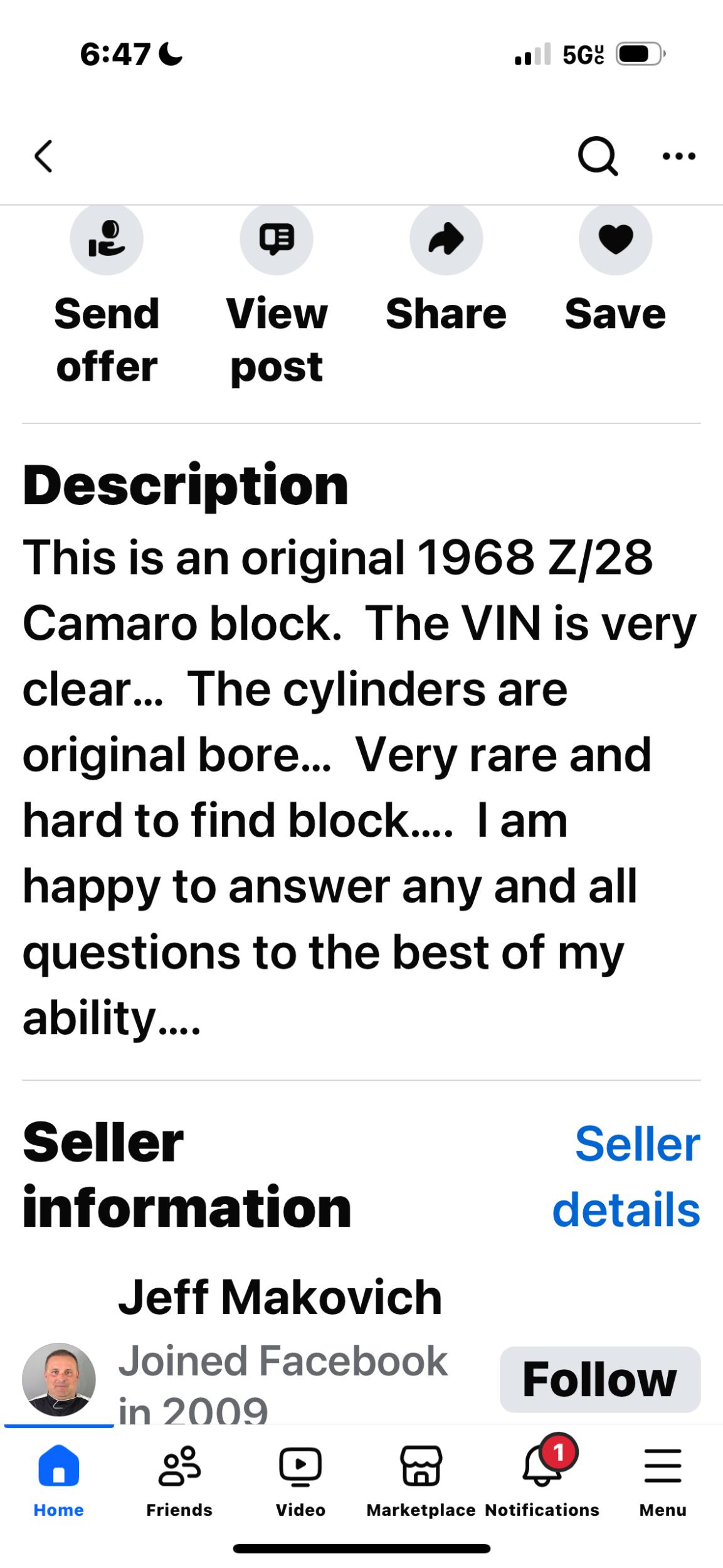 68 Z28 block with Vin