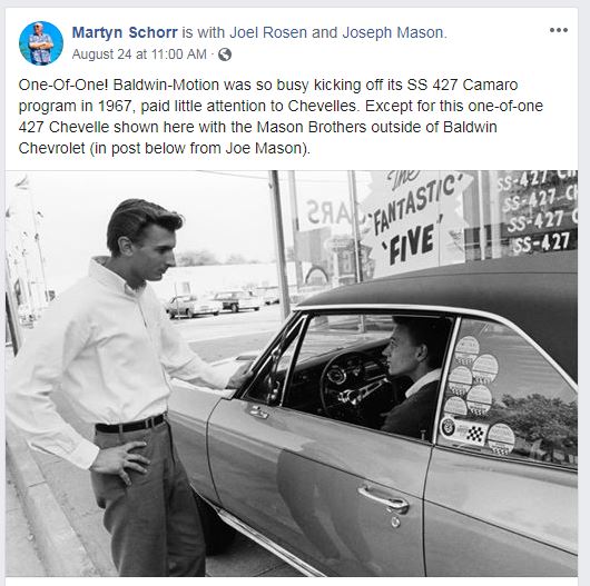 The car is the first Baldwin Motion SS 427 Chevelle sold and was a very well known car in the NY/CT area. It is the only 1967 Baldwin Motion SS 427 Chevelle in existence today. Extensive details about the car can be found in April 1968 "Speed and Supercar" magazine as well as the Jan. 1969 "Hi-Perf. CARS" magazine. I will try to post some scans of the magazine articles shortly.