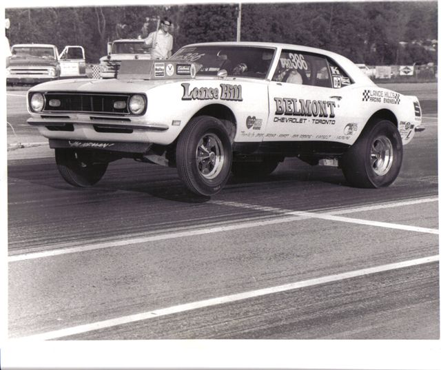 As the driver said 'flying time' in the Belmont Chev Toronto Canada 1968 Camaro. Englishtown raceway 1970.