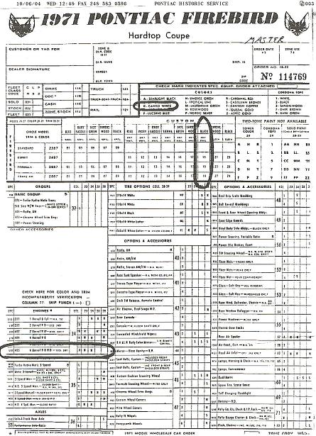 Enter 2004 and John Motroni. Last year while reading a Good Guys magazine, he saw an add for ’71 Trans Am with “L56” engine. Knowing that looked odd, John called the add only to find out it was in fact the “Tirebird with the warranty LS-6 that the then current owner had stored in a barn since 1983! The previous owner was able to supply John with copies of all the car’s magazine articles and other documents. Satisfied it was the real deal, John took home his new Addition. John is a retired consumer news writer for ABC Television. Having always loved and owned fast cars, his latest was a 63 Corvette convertible with a Dino Frey race 350 engine, a ’69 original engine Z-28 and an ’86 Grand National with an upgraded turbo, intake and exhaust. His latest addition of course being the ex-BF Tirebird. This car was discussed some time ago on this site. I am pleased to welcome John and his Trans Am to the site. Hopefully John will chime in and add more to this unique car and automotive history.