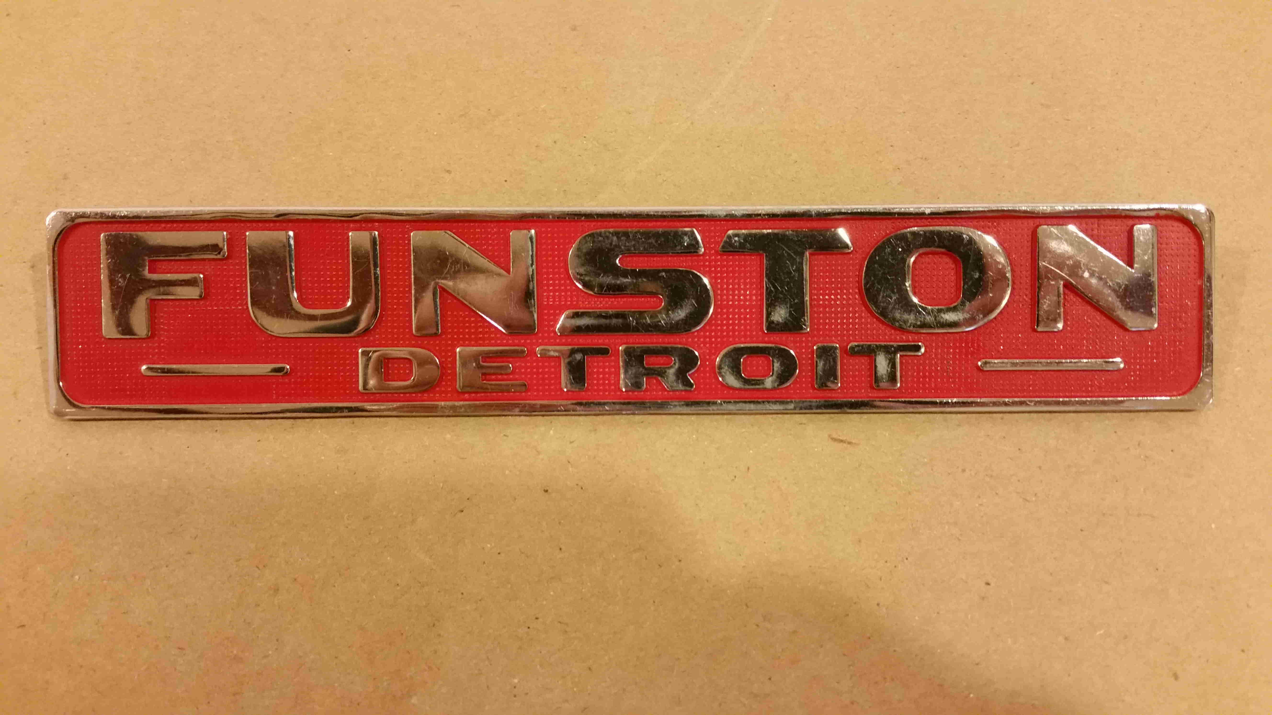 Paul here. I had never seen that type of Funston emblem before. They had a stick-on label that either went directly on the bumper