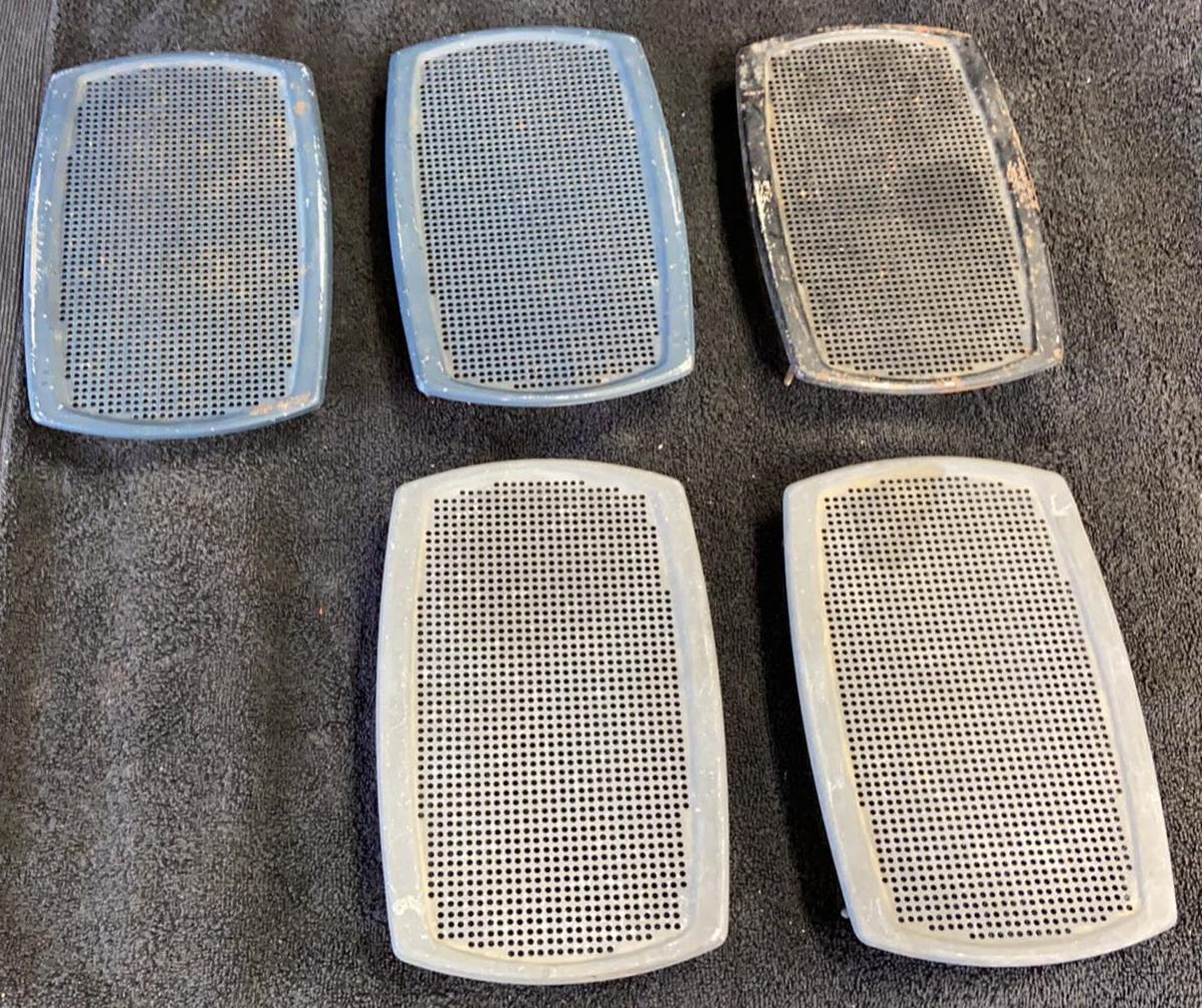-The three top ones are Excellent used Original GM grills needing restoration -Two bottom ones may have been from NOS GM speaker kits and are near mint $150 a Pair or $80 each, $9 Shipping. Paypal "Friends" in USD only.