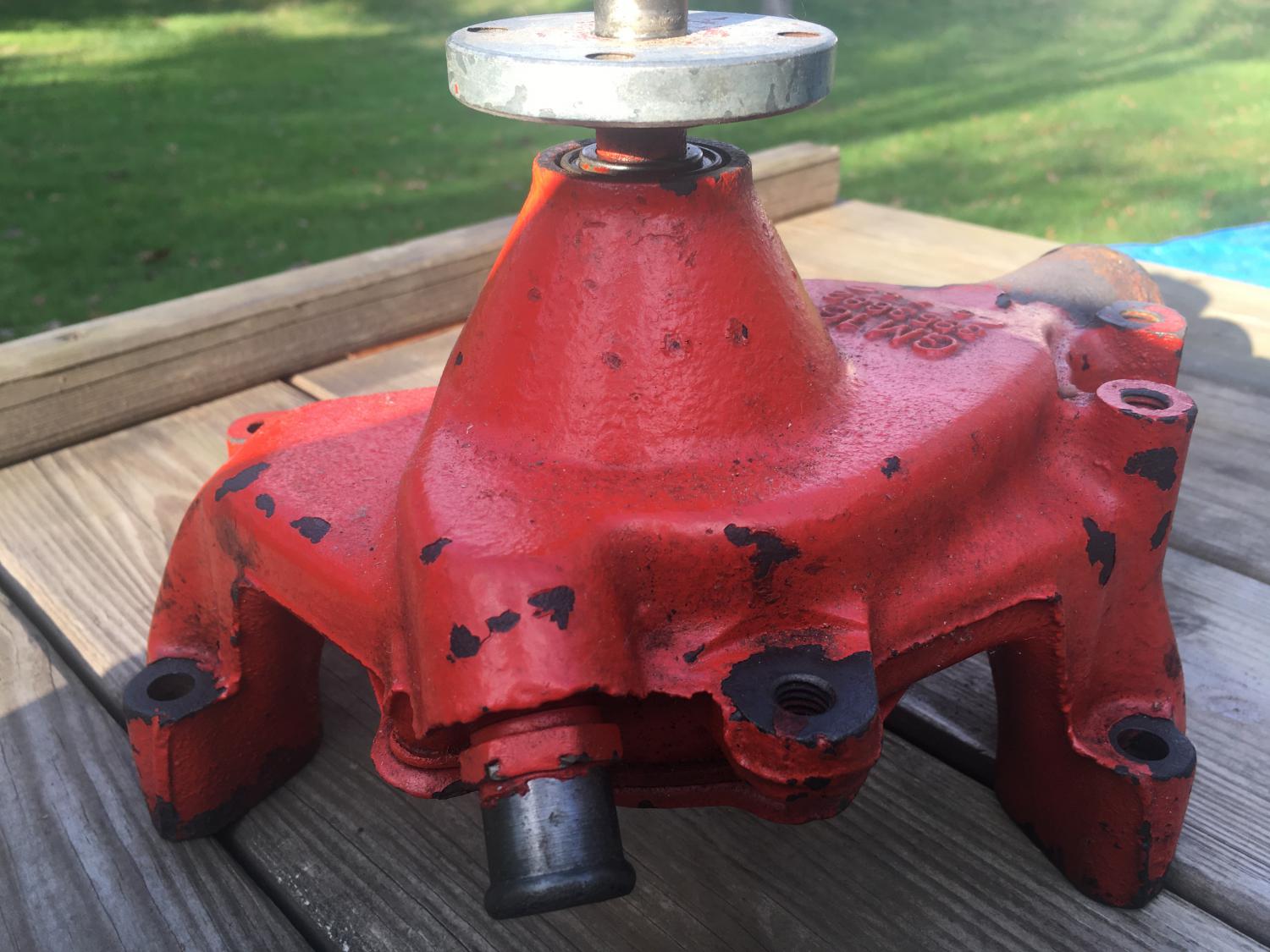 Small block Chevy 3958692 long water pump fits small block Chevy cars except Corvette. Spins free and has no stripped threads, I would get it rebuilt, selling as a core. Dated