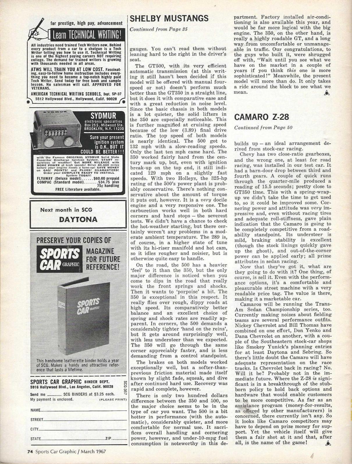 Jerry Titus is known for his Trans Am racing career, but just prior to joining the Shelby Trans Am team he was on the editorial staff for Sports Car Graphic and penned this review Mar of 67, just prior to joining the Shelby race team.